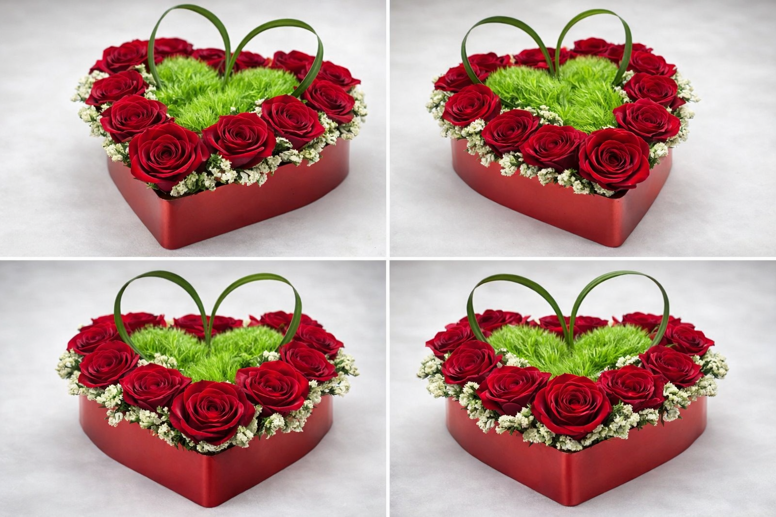 Arte floral en forma de corazón. Elaborado con rosas y flores de temporada.